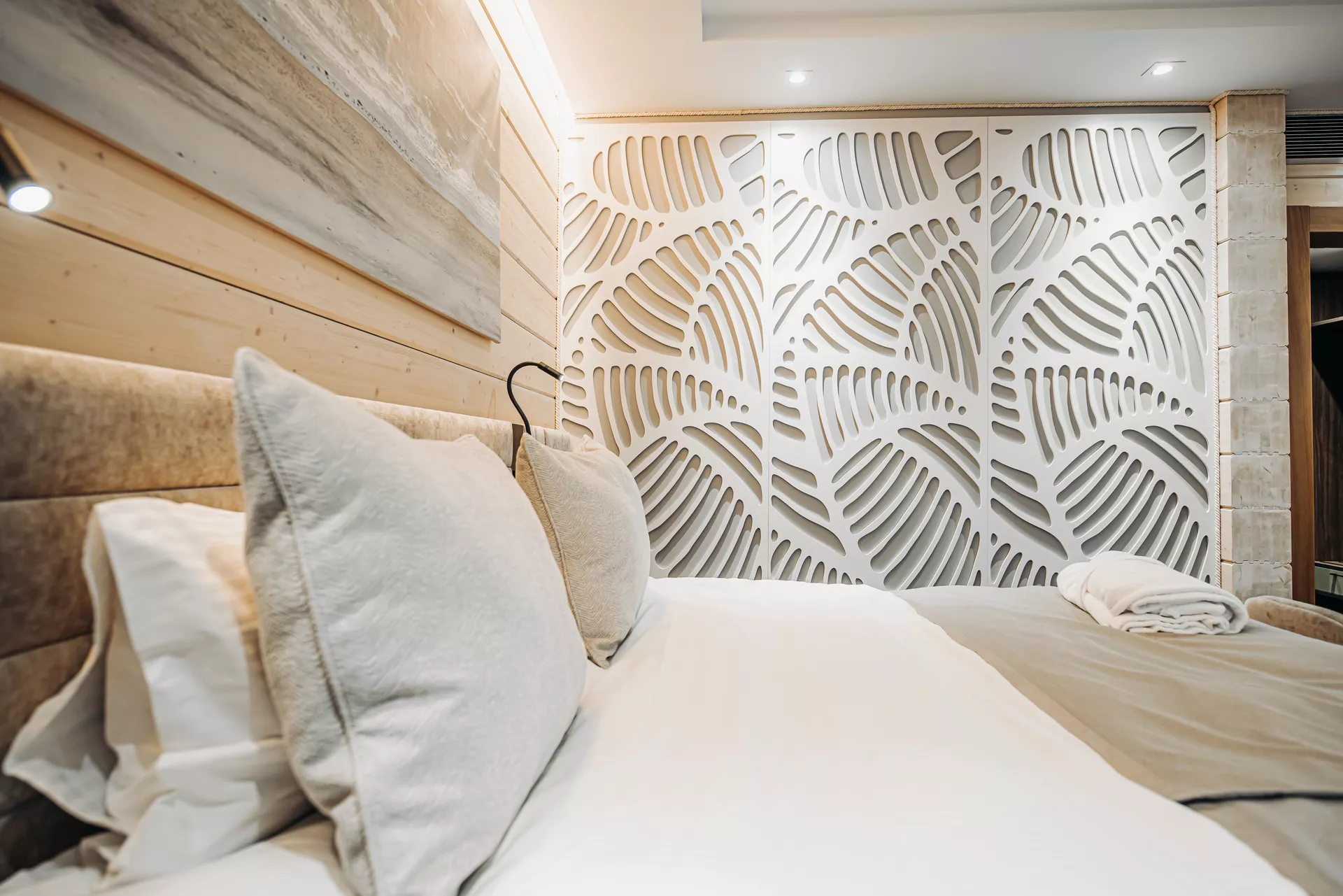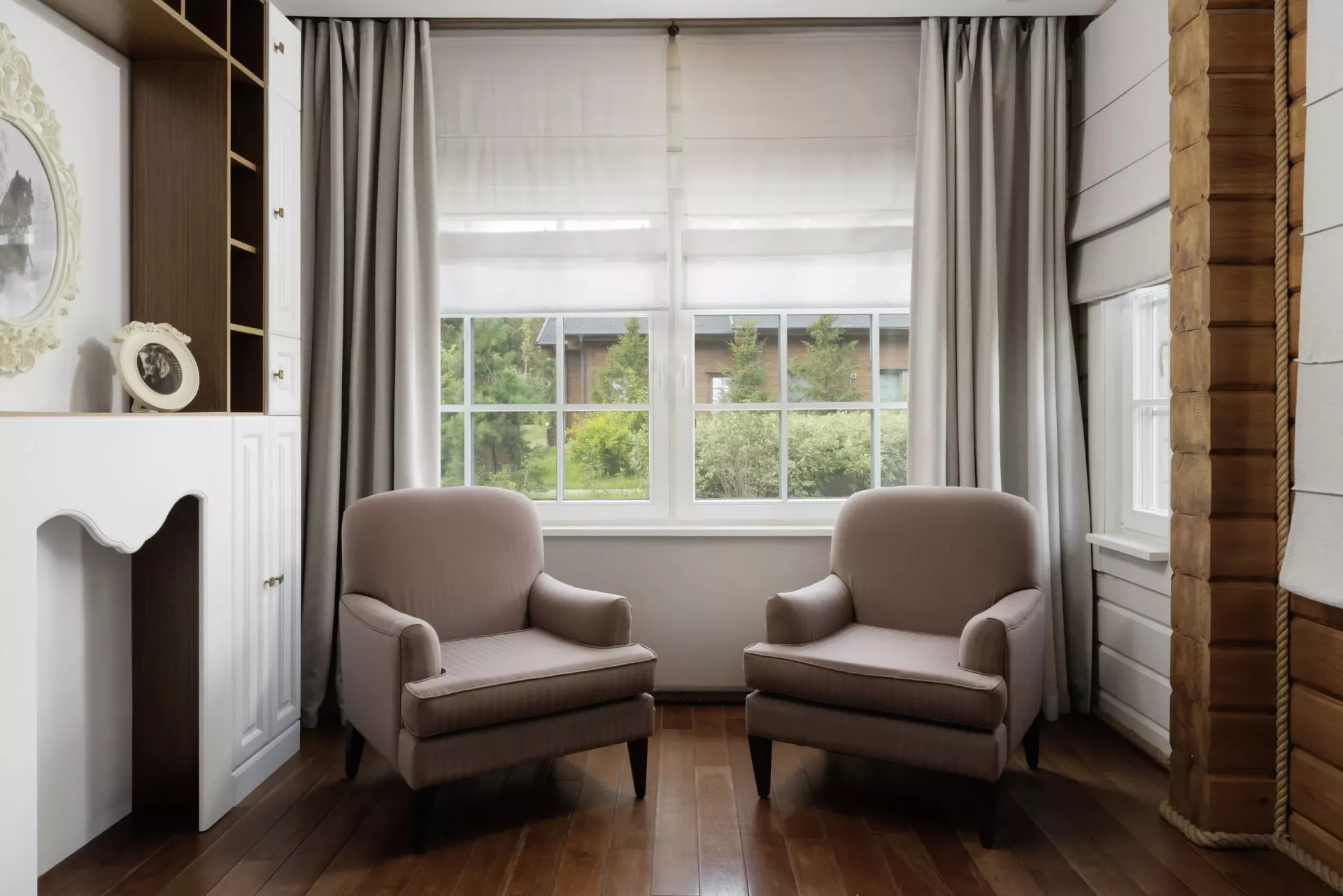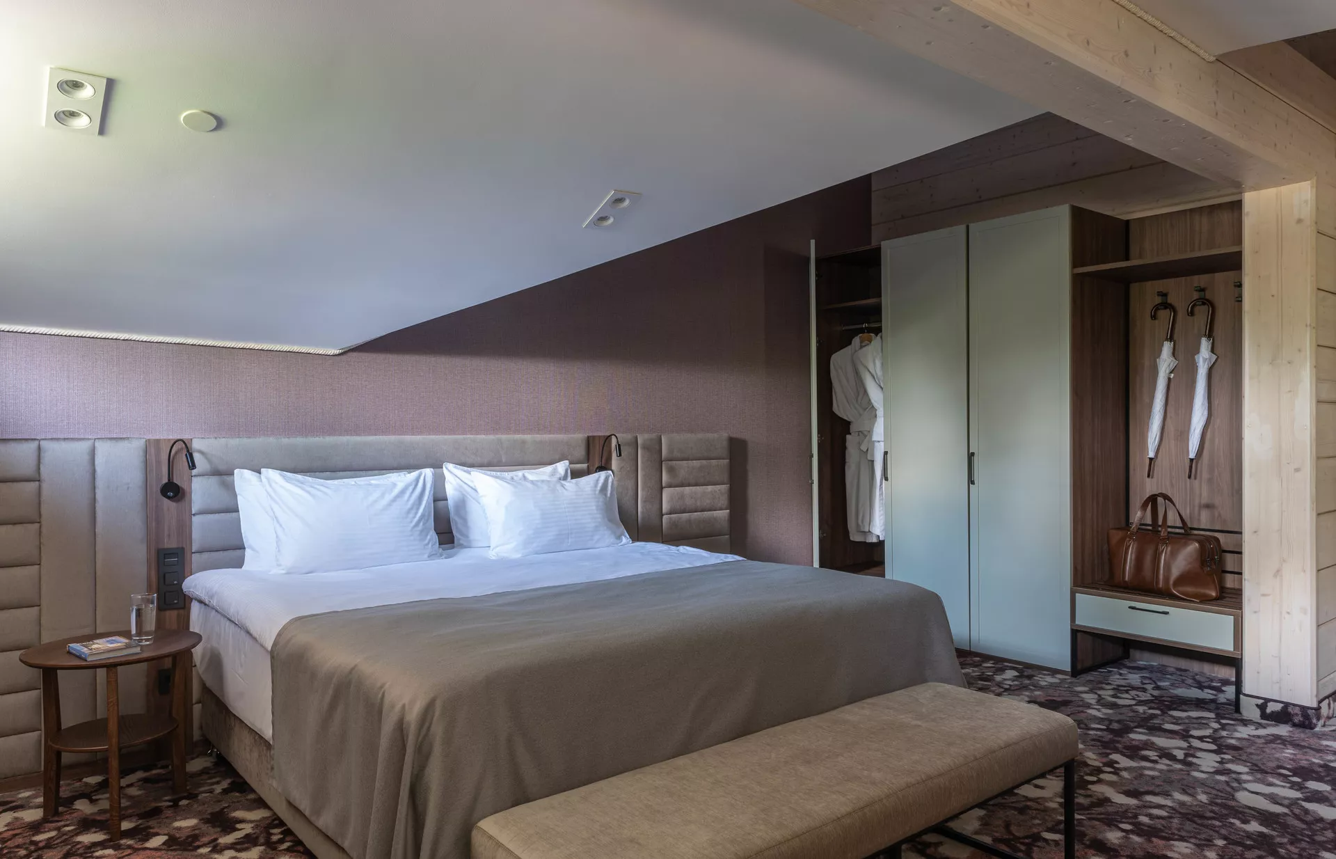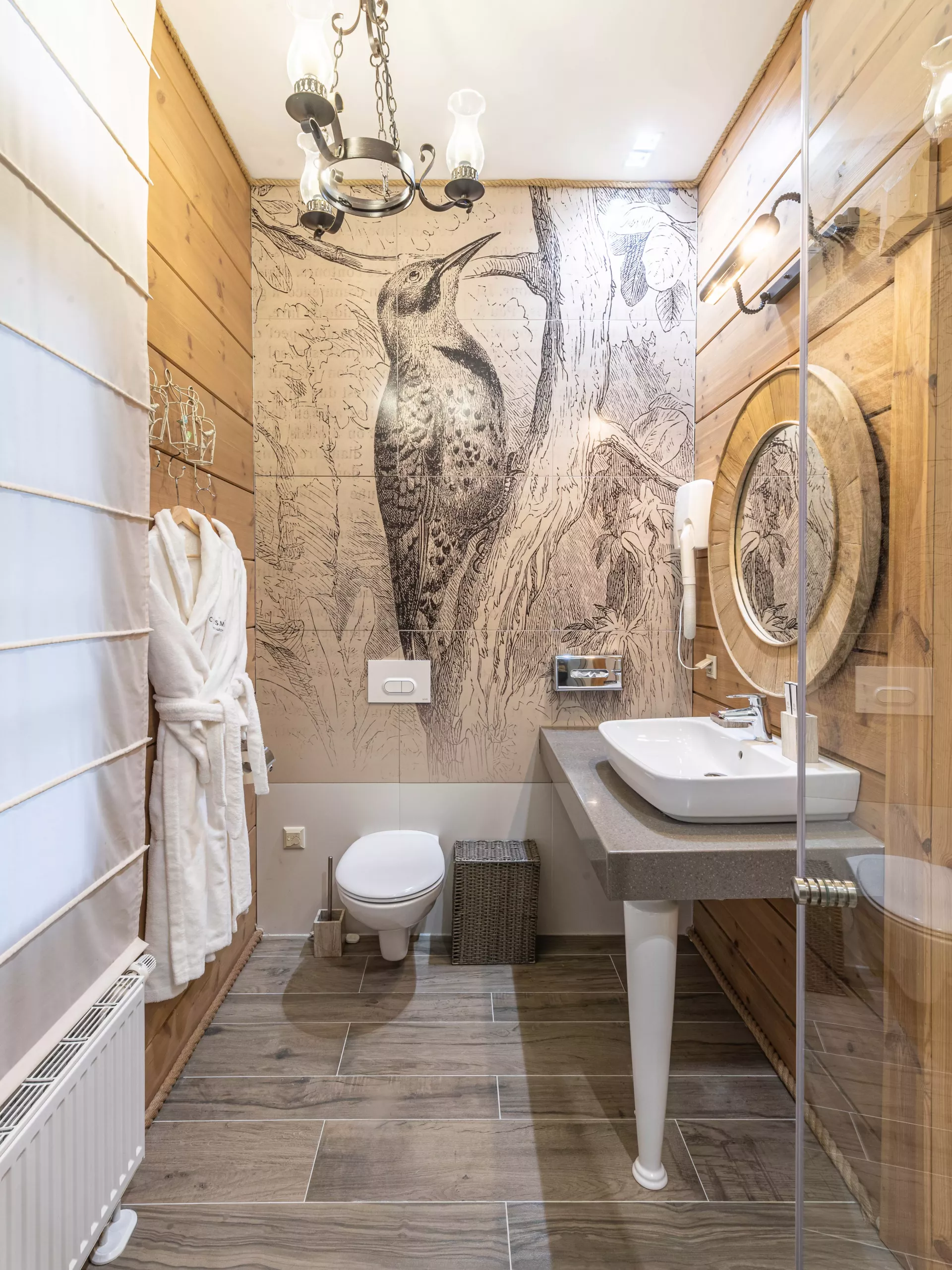 Простой и понятный дизайн, просторные и свободные пространства, а также преобладание светлых оттенков и натуральных текстур — умиротворяющая атмосфера уединенного отдыха в окружении природы. Большие окна наполняют пространство естественным светом и создают ощущение единения с лесным пейзажем.