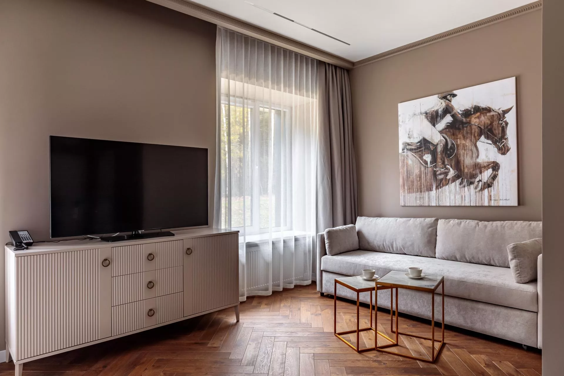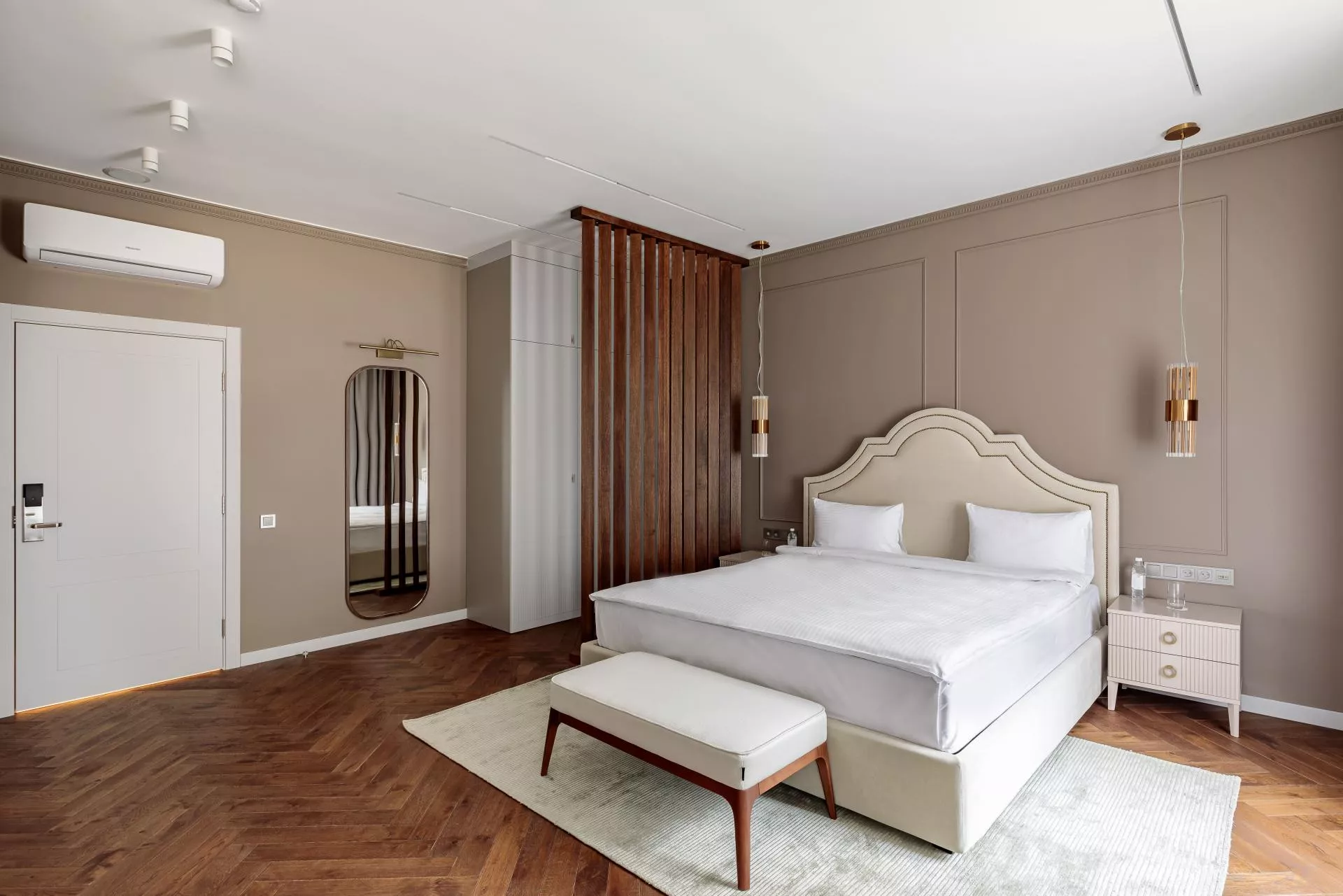 Студио Сьют – это просторный номер, оформленный в светлых тонах. Номер состоит из двух изолированных комнат и зоны прихожей.
